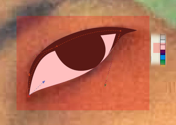 Lengkungkan garisnya dengan cara yang sama seperti sebelumnya. Blok garis yang sudah dibuat tadi dengan menggunakan [Pick tool], lalu klik [Convert to line curve]. Atur mengikuti bentuk garis matanya.